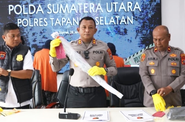 Polisi dari Sat Reskrim Polres Tapsel pun mengamankan sejumlah barang bukti seperti, sebilah parang sepanjang 50 Cm, sebuah baju lengan pendek warna hitam-putih bermotif garis-garis, satu celana panjang warna merah, sebuah kaos singlet warna abu-abu, serta satu celana pendek warna biru.