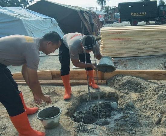 Danton Penugasan Operasi Aman Nusa II, Ipda Leonardo Marbun, yang turut mengoordinasikan personel dalam pengamanan sekaligus kerja sosial bersama masyarakat. Pada pembangunan huntara di Desa Garoga, personel Brimob bersama warga membantu pengecoran tiang pondasi rumah milik Bapak Aswin Wardi. Proses pengerjaan saat ini masih berlangsung dan berjalan sesuai tahapan.