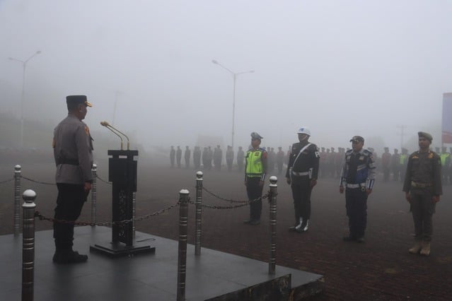 Tapanuli Selatan – Meski diselimuti kabut tebal dan jarak pandang yang minim, Polres Tapsel tetap menggelar apel gelar pasukan Ops Keselamatan Toba 2026 dengan penuh semangat di halaman Mako Polres Tapsel, Senin (2/2/2026) pagi. Apel gelar Pasukan Operasi Keselamatan Toba 2026 ini langsung Wakapolres Tapsel Kompol Muslim Amin, SE yang bertindak sebagai Irup yang mewakili Kapolres Tapsel AKBP Yon Edi Winara.