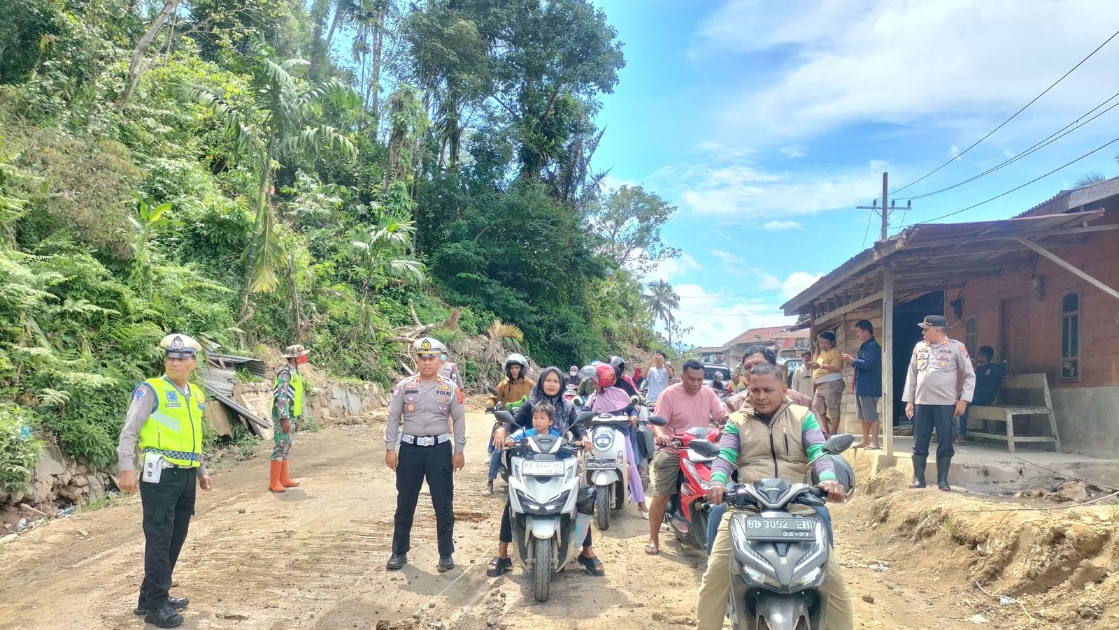 Tapanuli Selatan – Memastikan arus lalulintas (lalin) agar lancar dan aman di jalan lintas umum (jalinsum) dusun pengkolan Batu Jomba, Kasat Lantas Polres Tapsel Iptu James Sihombing, SH, MH bersama anggota meninjau dan mengawal perbaikan jalan di kawasan yang terkenal akibat sering menimbulkan kecelakaan dan kemacetan panjang.