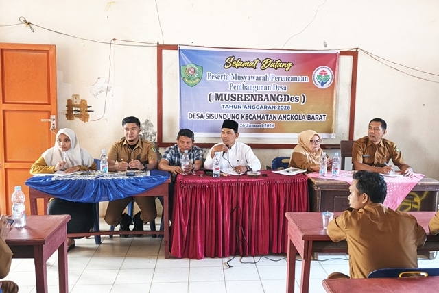 Di acara Musrenbang Desa Sisundung ini digelar di Madrasah Desa Sisundung, pada Senin (26/1/2026) yang dibuka langsung Ketua BPD didampingi Kasi Pemmas Kecamatan Angkola Barat Juni Suryani, Kepala Desa Sisundung Ikbal Lubis, SH.